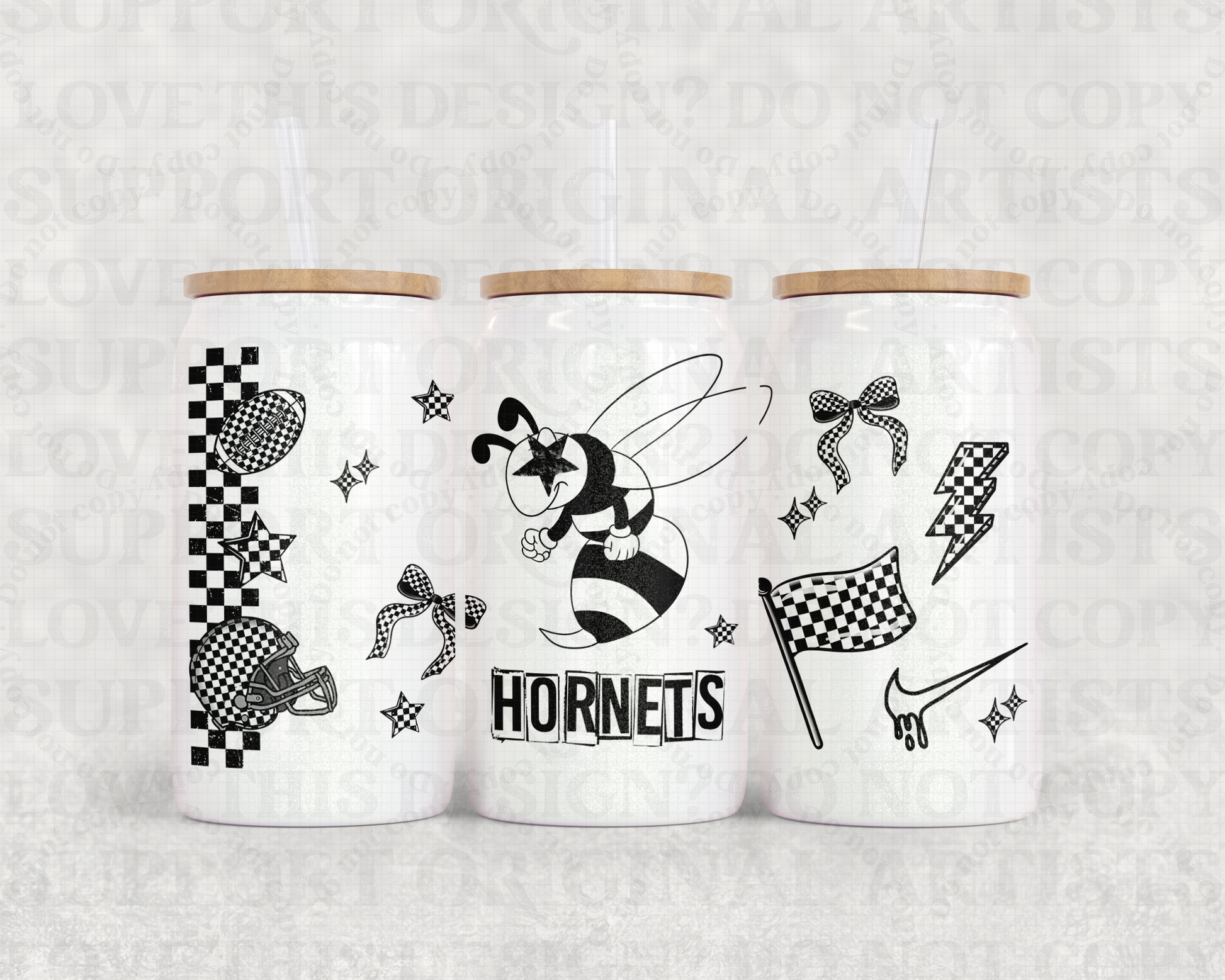 16oz Glass Can Tumbler PNG Mascot Hornets